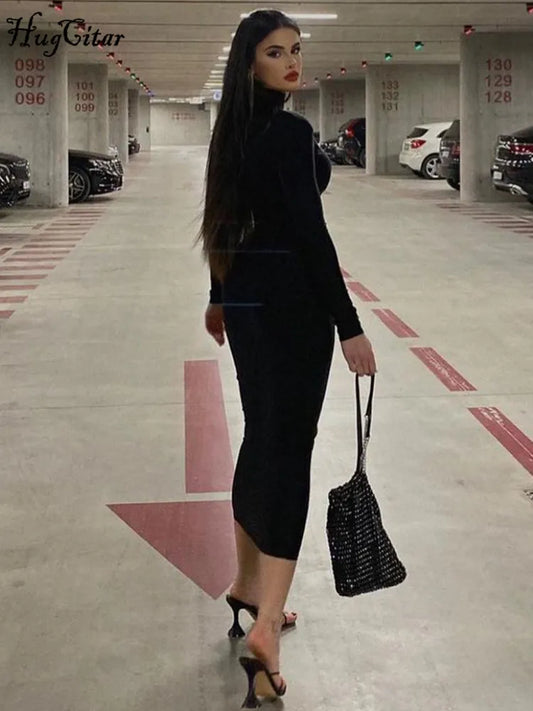 En PromotionRobe longue moulante à col roulé – Noir élégant