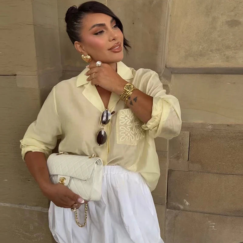 Incarnez l'alliance parfaite entre le chic urbain et le confort absolu avec cette chemise automnale signée 2025. Sa coupe loose sophistiquée et son tissu d'exception créent une silhouette à la fois aérienne et structurée, vous accompagnant avec une élégance naturelle du bureau à vos escapades.